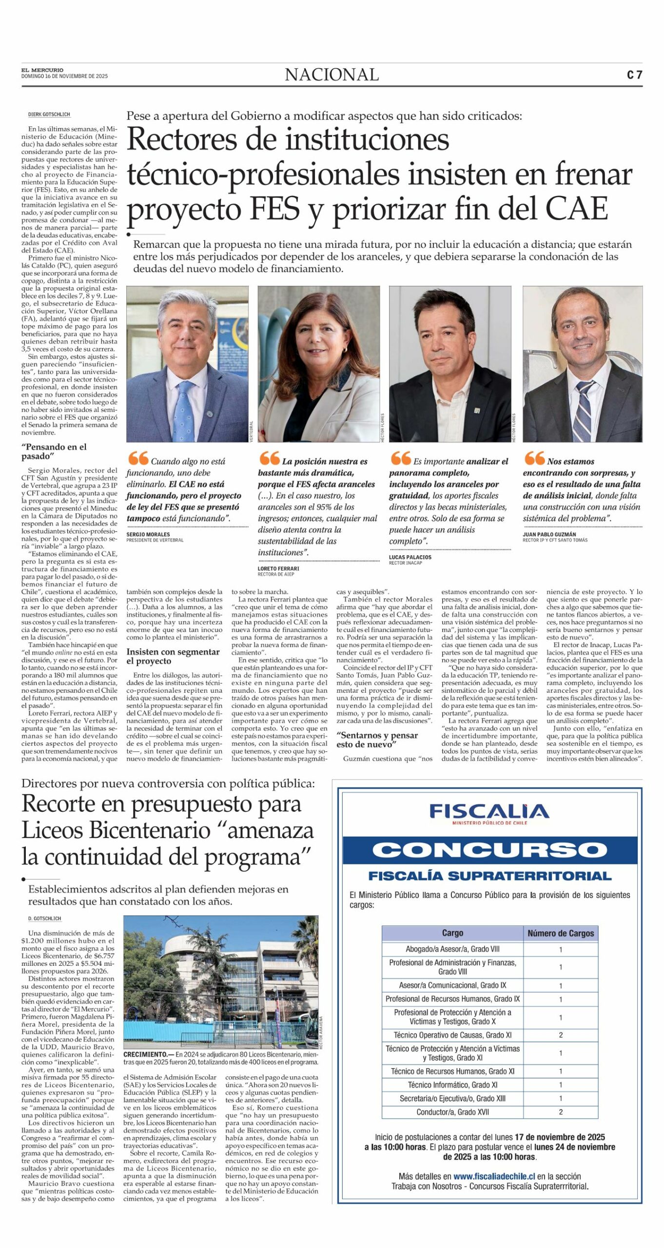 Ayer, en tanto, se sumó una misiva firmada por 55 directores de Liceos Bicentenario, quienes expresaron su “profunda preocupación” porque se “amenaza la continuidad de una política pública exitosa”.