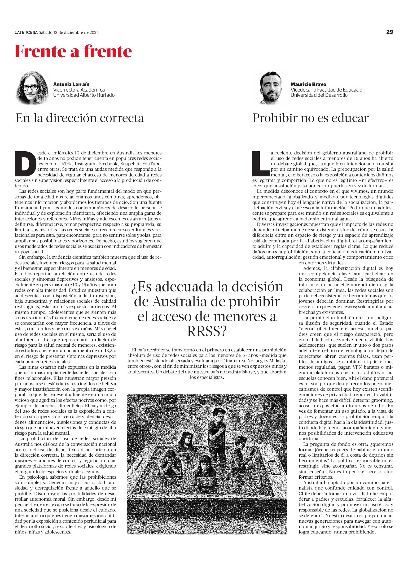 Chile debería tomar una vía distinta: empoderar a padres y escuelas, fortalecer la alfabetización digital y promover un uso ético y responsable de las redes. La globalización no se detendrá. Nuestro desafío es preparar a las nuevas generaciones para navegar con autonomía, juicio y responsabilidad. Y eso solo se logra educando, nunca prohibiendo.