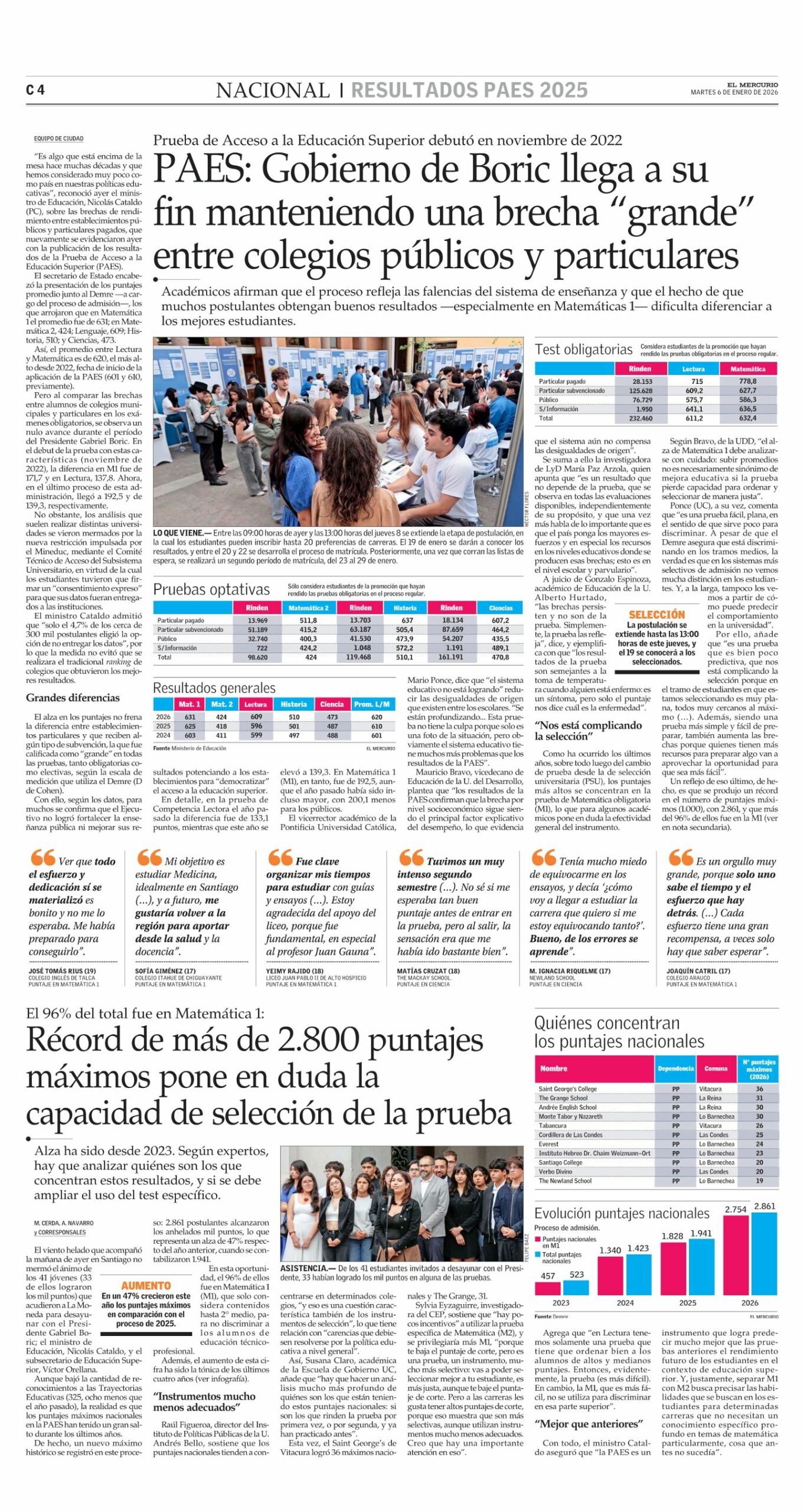 (…) Mauricio Bravo, vicedecano de Educación de la U. del Desarrollo, plantea que “los resultados de la PAES confirman que la brecha por nivel socioeconómico sigue siendo el principal factor explicativo del desempeño, lo que evidencia que el sistema aún no compensa las desigualdades de origen”.