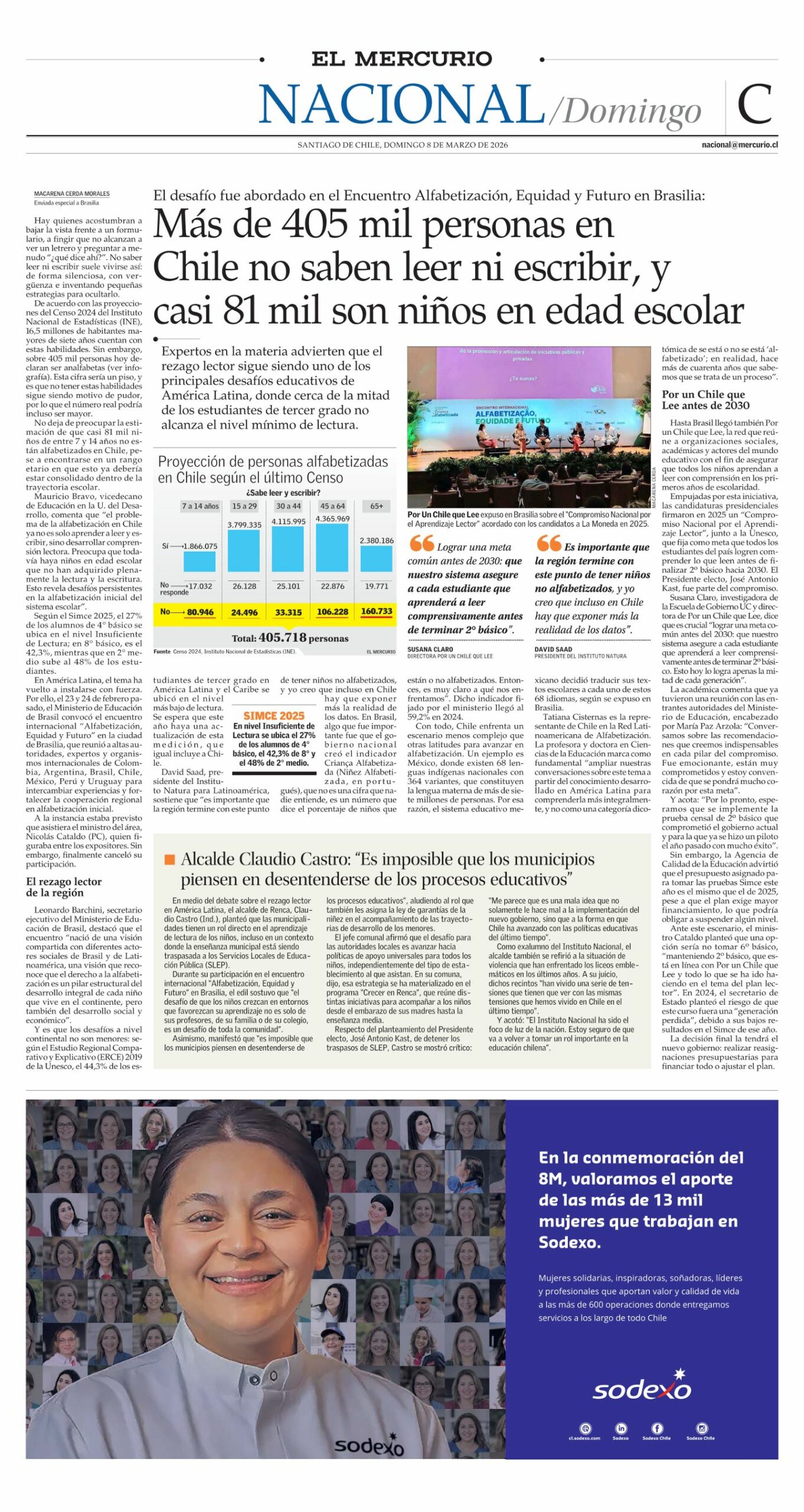 Mauricio Bravo, vicedecano de Educación en la U. del Desarrollo, comenta que “el problema de la alfabetización en Chile ya no es solo aprender a leer y escribir, sino desarrollar comprensión lectora. Preocupa que todavía haya niños en edad escolar que no han adquirido plenamente la lectura y la escritura. Esto revela desafíos persistentes en la alfabetización inicial del sistema escolar”.