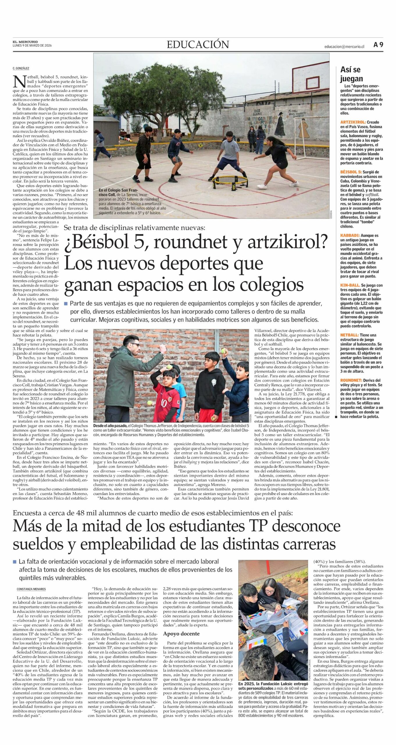 Soledad Ortúzar, directora ejecutiva del Centro de Innovación en Liderazgo Educativo de la U. del Desarrollo, quien no fue parte del informe, menciona que en Chile, alrededor de un “40% de los estudiantes egresa de la educación media TP y cada vez más ellos optan por continuar con la educación superior. En ese contexto, es fundamental contar con información clara y oportuna para que comprendan mejor las oportunidades que ofrece esta modalidad formativa que prepara en ámbitos muy importantes para el desarrollo del país”.