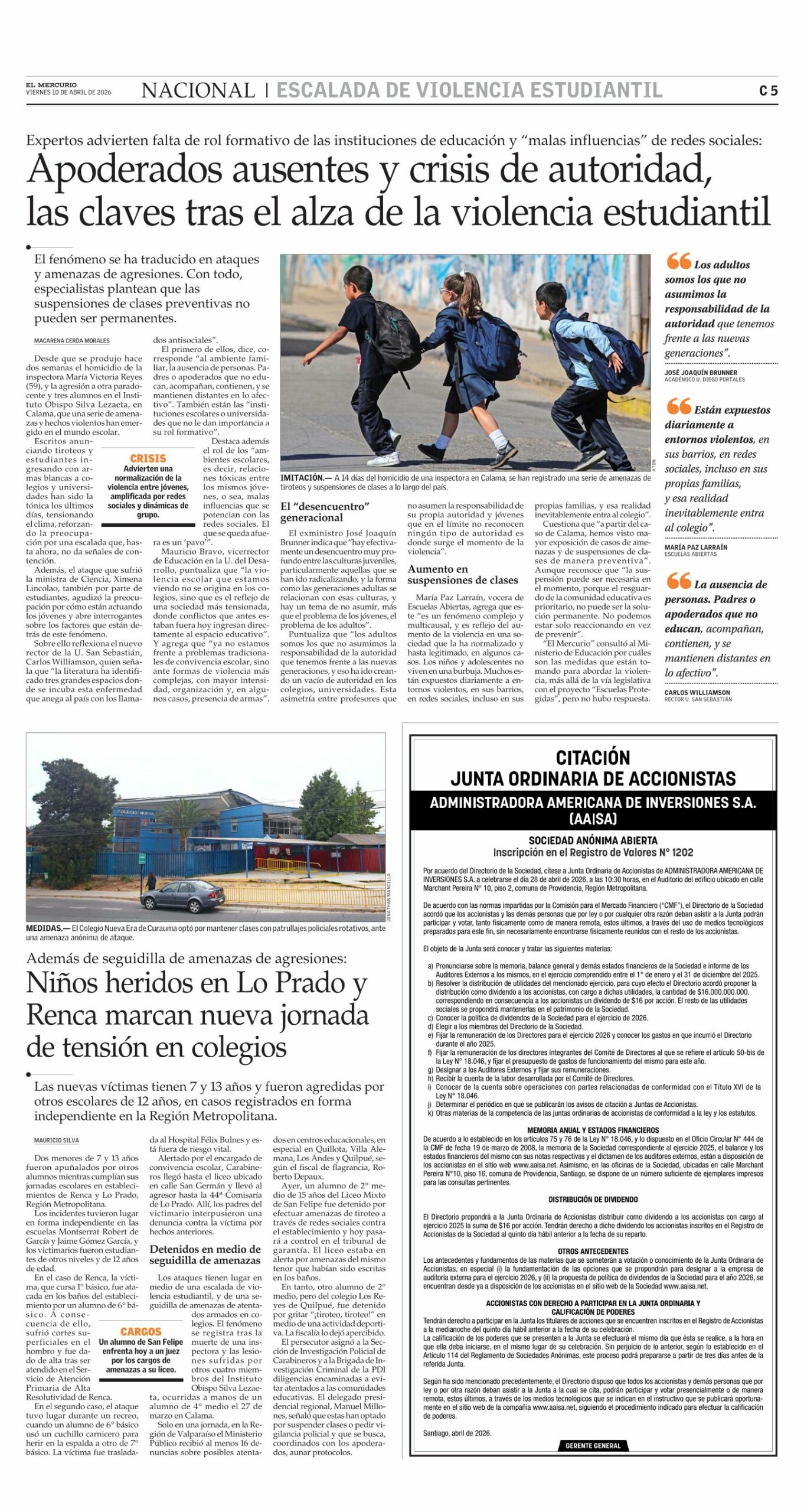 El Mercurio | Mauricio Bravo analiza claves tras el alza de la violencia estudiantil