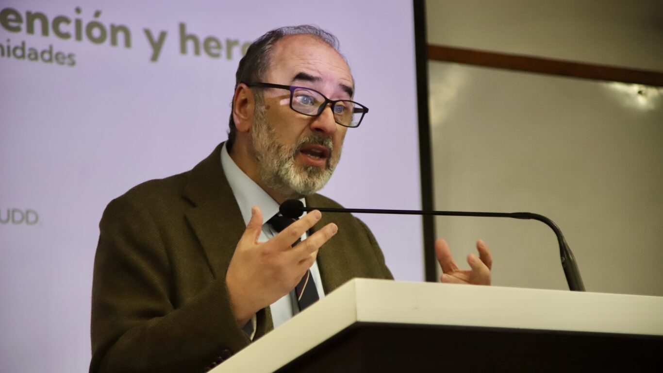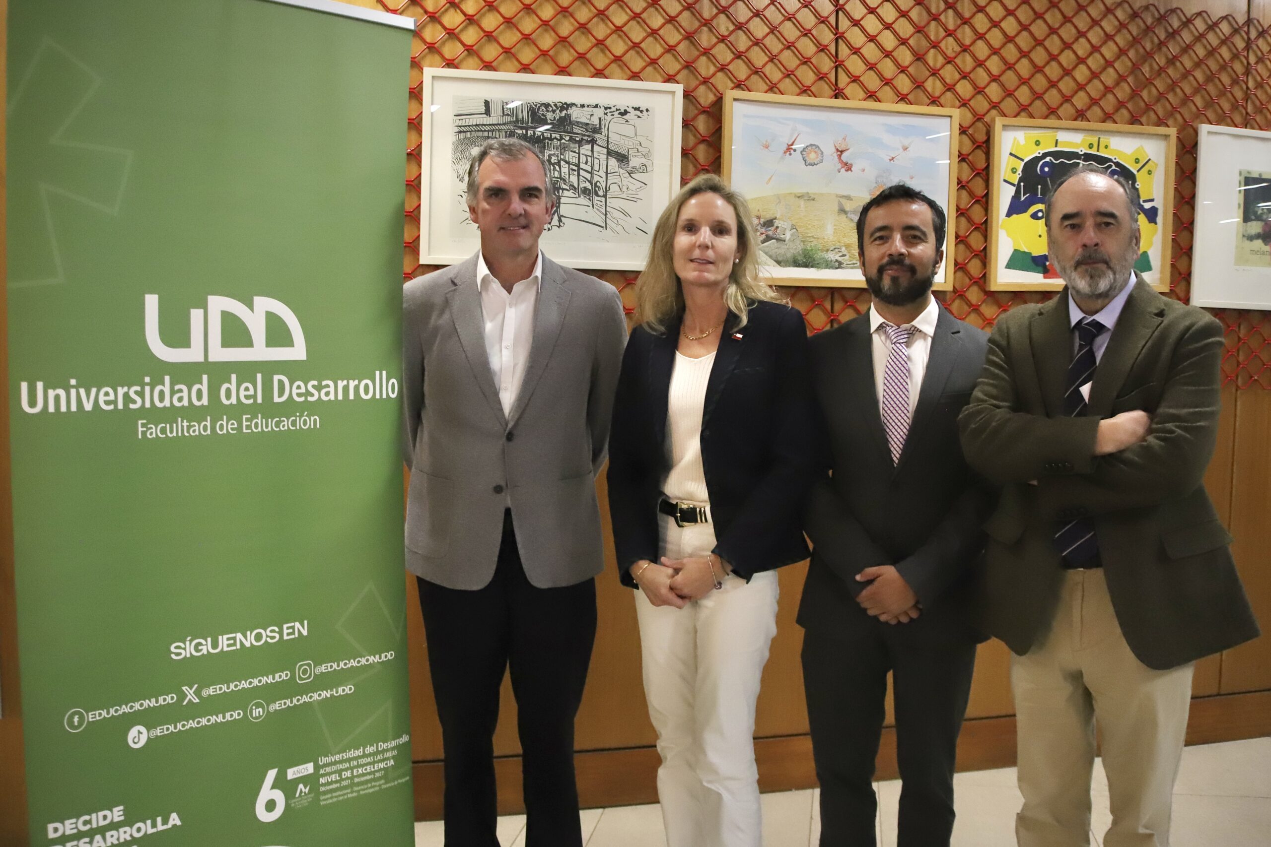 El acto fue inaugurado por Eugenio Guzmán, decano de Educación UDD, quien situó el debate en una perspectiva histórica de larga data. «La universidad tiene más de ocho siglos de existencia. Ha permanecido a pesar de la caída de gobiernos y de transformaciones radicales», señaló. Para el decano, esa persistencia no es casual: «La universidad no nació de decretos, nació de una pregunta. Significa una corporación, un conjunto de personas unidas por un objetivo común que buscaba que las verdades no fueran acabadas. Este libro plantea preguntas y propuestas que llaman a pensar».